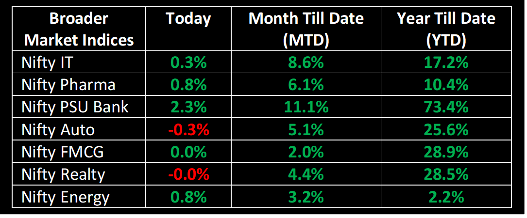 ▪ Sterling and Wilson Renewable Energy Ltd: Stock surged 15.6% as the company secured two new domestic orders and is expected to improve EBITDA margins by FY25E.