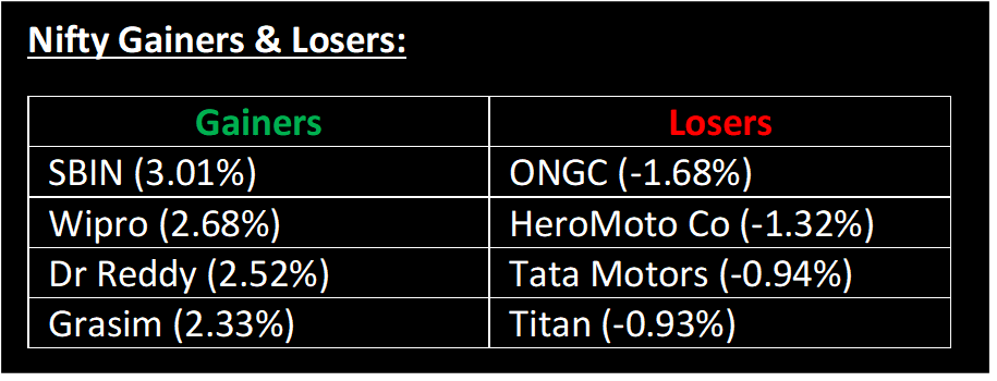 ▪ Dr Reddys Laboratories Ltd: Stock gained 2.7% after the company signed a pact for buying a 26% stake in special purpose vehicle O2 Renewable Energy IX Pvt Ltd.