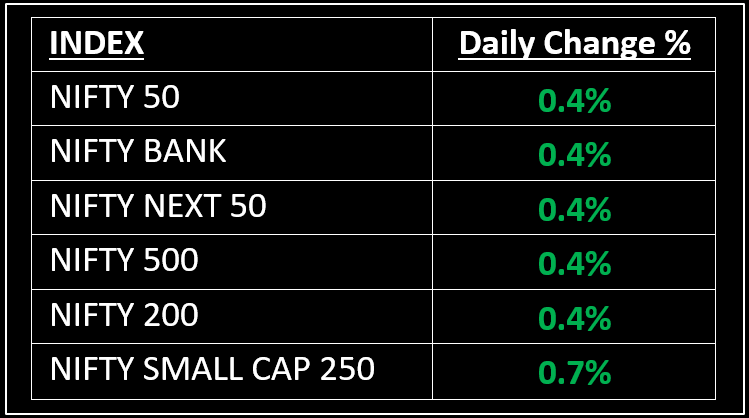 On October 17, the Nifty reversed a three-day decline and ended the day in positive territory thanks to widespread buying, notable increases in banking sector stocks, and a decrease in oil prices. Fuelled by favorable international indicators, the market started the day with a strong opening and maintained its position near the daily peak, primarily driven by investments across various sectors.