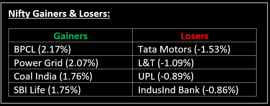 On October 17, the Nifty reversed a three-day decline and ended the day in positive territory thanks to widespread buying, notable increases in banking sector stocks, and a decrease in oil prices. Top Gainer: BPCL | Top Loser: Tata Motors