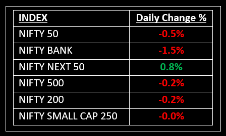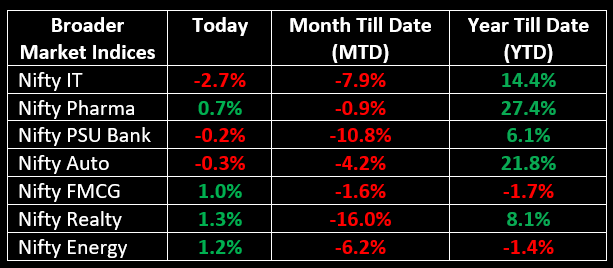 Among sectors, IT and Banking indices declined by 2% each, while Oil & Gas, Power, FMCG, PSE, Capital Goods, Realty, and Metal indices gained 1% each.