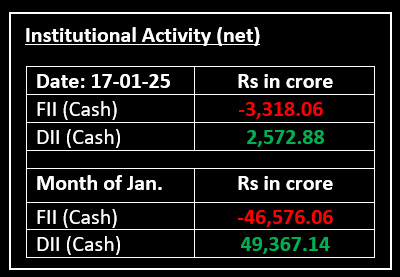 On January 17, Indian markets faced significant selling pressure, breaking a three-day winning streak. The sharp sell-off in banking and IT counters weighed heavily on the market, despite sector leaders like Infosys and Axis Bank posting strong quarterly results.
