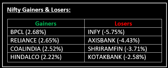 On January 17, Indian markets faced significant selling pressure, breaking a three-day winning streak. Top Gainer: BPCL | Top Loser: INFY