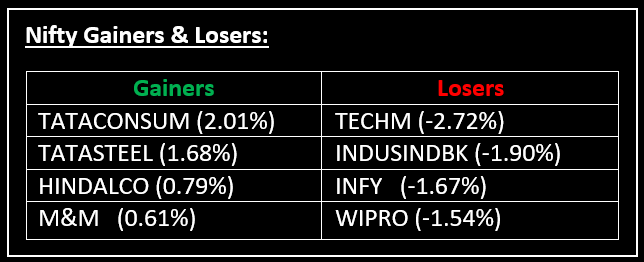 On July 17, benchmark indices reversed a two-day gain, wiping out most of the previous session's progress, due to selling pressure in IT and banking stocks following weak June quarter earnings. Top Gainer: TATACONSUM| Top Loser: TECHM