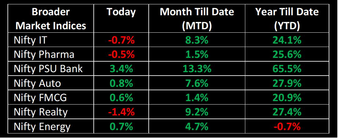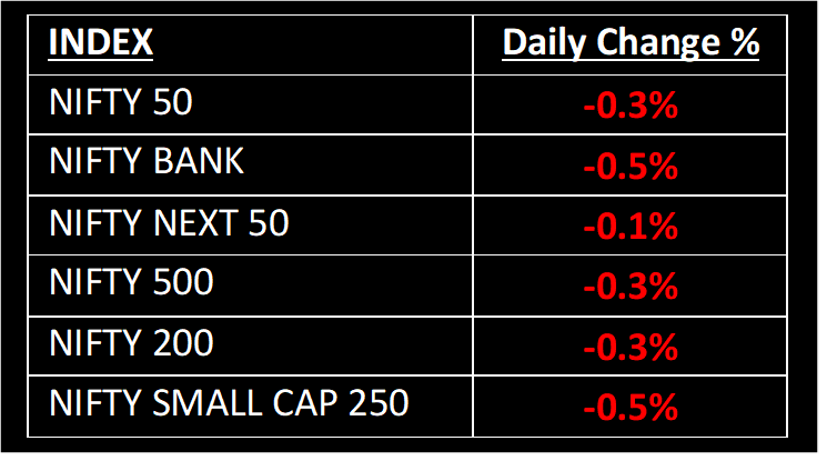 The Indian benchmark indices ended with minor losses in a volatile trading session on September 18. The market opened lower amid weak global cues and continued to stay in negative territory throughout the day, eventually closing near its lowest point. Nevertheless, the presence of buyers in the automotive, power, and public sector banks sectors helped limit the overall losses. The Indian markets will remain closed on September 19, in observance of Ganesh Chaturthi.
