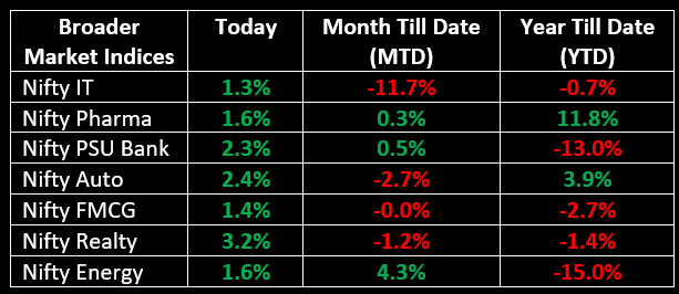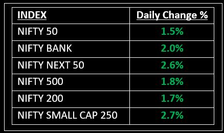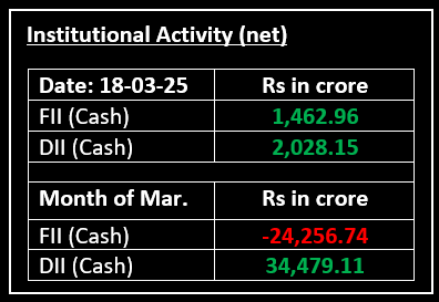 On March 18, Indian equity indices continued their positive momentum for the second consecutive session, fuelled by strong buying across various sectors and broader indices. All sectoral indices ended in the green, with auto, capital goods, consumer durables, metal, power, realty, and media sectors seeing gains of 2-3%, contributing to the overall upward movement.