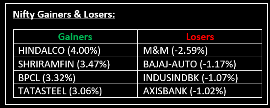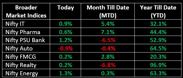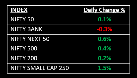 On the sectoral front, all indices except auto and bank closed higher, with gains of 0.5-2% in healthcare, IT, metal, oil & gas, power, telecom, and media. Meanwhile, Interarch Building Products launched its IPO in the primary market today. Click here for a comprehensive analysis of the IPO.
