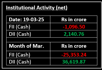 On March 19, Indian benchmark indices rallied for the third consecutive session. Despite mixed global cues, the indices opened with mild gains, and strong support from broader indices, along with buying across most sectors, helped drive the rally.