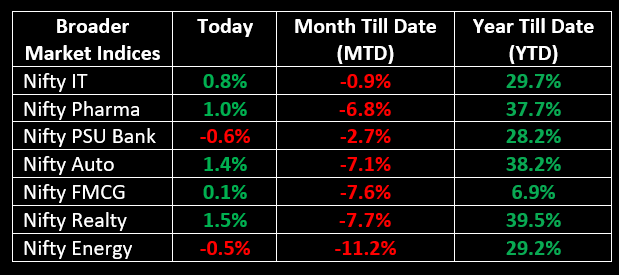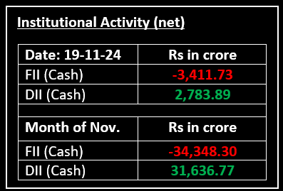 On November 19, the Indian equity markets snapped a seven-day losing streak, ending higher in a volatile session. Sector-wise, media, auto, realty, IT, and Pharma rose by 0.5-2.5%. Top Gainer: M&M | Top Loser: SBILIFE