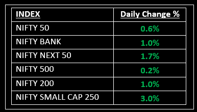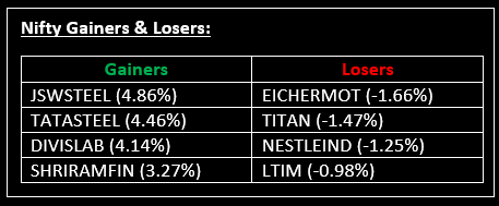 On April 1, the Indian equity market kicked off the financial year 2024-25 on a high note, witnessing a surge that propelled it to new highs for the third consecutive session. Top Gainer: JSWSTEEL | Top Loser: EICHERMOT