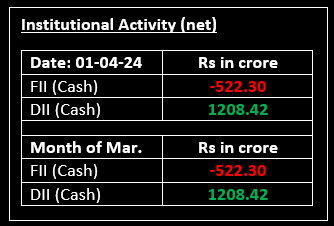 On April 1, the Indian equity market kicked off the financial year 2024-25 on a high note, witnessing a surge that propelled it to new highs for the third consecutive session. The Sensex and the Nifty reached record levels of 74,254.62 and 22,529.95, respectively, benefiting from widespread buying across sectors, particularly in power, real estate, and metal companies. However, some of the gains were trimmed later in the day due to profit-booking at the higher levels. With the exception of the auto & FMCG sectors, all other sectoral indices closed positively. Metal, power, capital goods, healthcare, and real estate recorded gains ranging from 1% to 4%, while the oil & gas, information technology, and banking sectors saw increases of 0.5%.