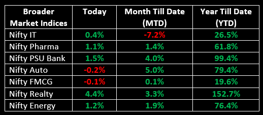 ▪ Adani Total Gas: Stock gained 4% after the company said its wholly owned subsidiary, Adani Total Energies Biomass Limited, commenced operations at Barsana Biogas Plant in the Mathura district of Uttar Pradesh.