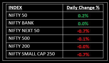 Among sectoral losers, Nifty Media led with a 1.9% drop, followed by Nifty Realty and Nifty PSU Bank, down 1.7% and 1% respectively. Consumer Durables and IT indices fell 0.5% and 0.4%. On the other hand, Nifty Oil & Gas rose 0.4%, and Nifty Healthcare increased by 0.3%.