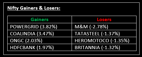 ▪ Coal India: Stock gained 3.5% after the company reported a 4.2% YoY rise in consolidated net profit and a 1.3% increase in its revenue for the June quarter.