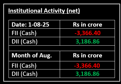 On August 1, benchmark indices ended lower for the second consecutive session, marking their fifth week of losses. The Nifty closed below 24,600 on the first day of the August series as broad-based selling, particularly in pharma stocks, weighed heavily on sentiment.