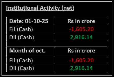 On October 1, Indian benchmark indices ended their 8-day losing streak with a strong performance, as the Nifty closed above 24,800. Top Gainer: TATAMOTORS | Top Loser: BAJFINANCE