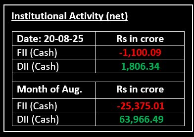 Indian equity markets extended their winning streak for the fifth consecutive session on August 20, led by IT, FMCG and realty stocks, marking the longest gaining streak in the last two months. Top Gainer: INFY| Top Loser: BEL