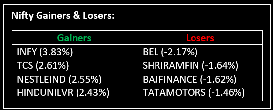 NIFTY: The index opened flat at 24,965 and made a high of 25,088 before closing at 25,050. Nifty has formed a bullish candle on the daily chart. Its immediate resistance level is now placed at 25,100 while its immediate support is at 25,000.