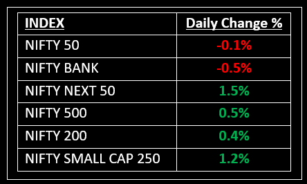 ▪ VST Industries: Shares dropped sharply by 3.7% amid reports that the GST Council may consider increasing taxes on cigarettes and other tobacco products. The news weighed on tobacco stocks, raising concerns about potential demand slowdown.