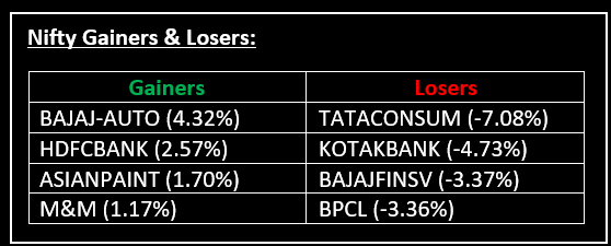 On October 21, following a smart recovery in the previous session, the market remained under pressure amid selling across most sectors, except auto. Top Gainer: BAJAJ-AUTO | Top Loser: TATACONSUM