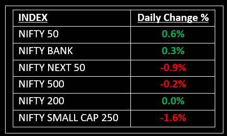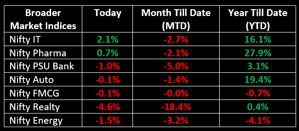 Sectoral performance was mixed, with Nifty IT, Nifty Pharma, and Bank Nifty recording gains. Meanwhile, the Nifty Realty index was the biggest laggard, falling 4%, reflecting weakness across most stocks.