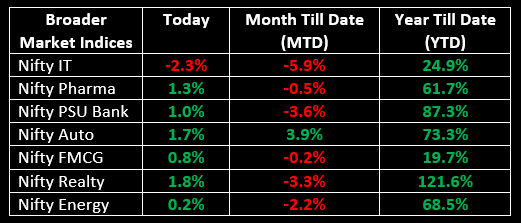 On March 22, the equity benchmarks concluded the day with gains, marking a third consecutive session of positive momentum driven by buying across sectors, except for information technology. Top Gainer: HEROMOTOCO | Top Loser: LTIM