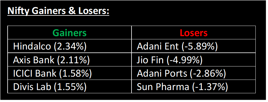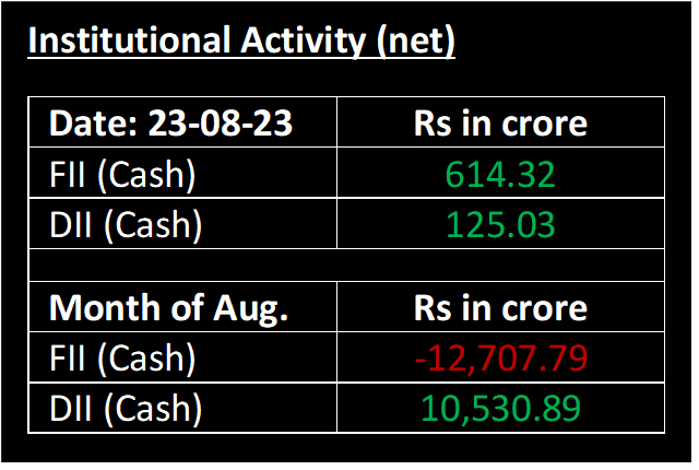 On August 23, the Nifty continued its upward trajectory for the third consecutive session, experiencing fluctuations in trade throughout the day before ending 48 points higher at 19,444. The market started on a flat note and traded in a narrow range through the first half. However, a surge in buying activity during the latter half of the day enabled the index to conclude near its highest point. The day was marked by significant volatility, with the banking, power, and metal sectors driving a rebound in prices.