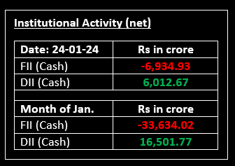 On January 24, Indian benchmark indices snapped a two-day losing streak and recovered some of the losses from previous sessions, closing higher in a volatile trading session. Top Gainer: HINDALCO | Top Loser: ICICIBANK