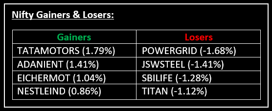 On December 24, benchmark indices ended with marginal losses in a volatile session. Top Gainer: TATAMOTORS | Top Loser: POWERGRID
