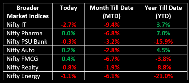 On the sectoral front, IT, metal, and telecom indices dropped 2%, while auto, pharma, and FMCG managed to stay in the green.