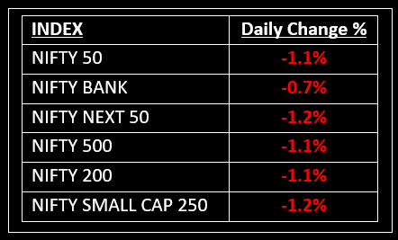 On February 24, benchmark indices extended their decline for the fifth consecutive session, weighed down by weak global cues, ongoing concerns over a potential trade war involving the US, and continued foreign capital outflows. Top Gainer: M&M | Top Loser: WIPRO