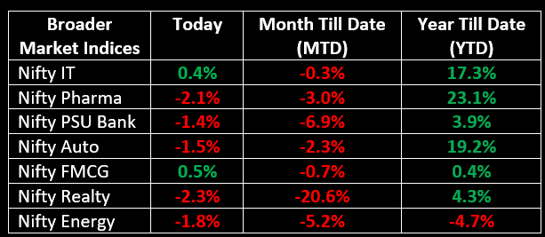 Among sectors, barring FMCG and IT, all other indices ended lower with auto, oil & gas, and realty sectors being the worst hit.