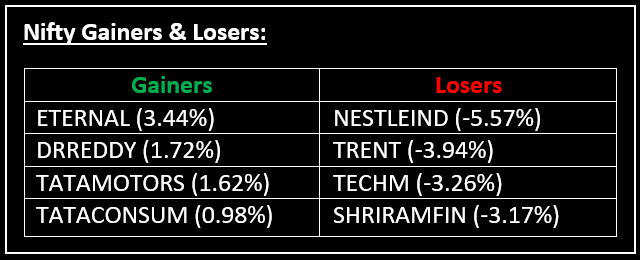 On July 24, benchmark indices Sensex and Nifty fell more than 0.6% each, wiping out the gains from the previous session amid broad-based selling across sectors. Top Gainer: ETERNAL | Top Loser: NESTLEIND