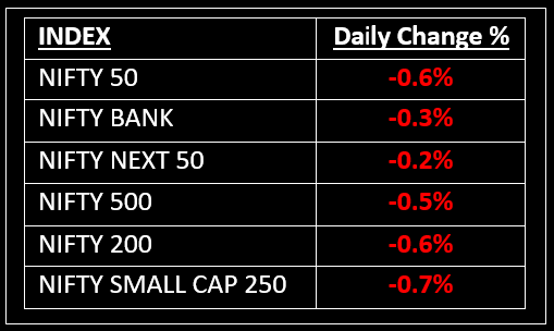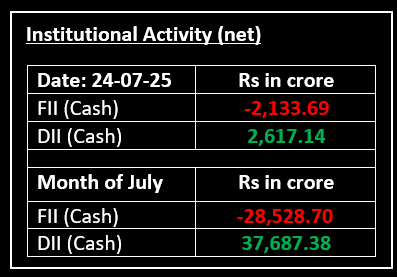 On July 24, benchmark indices Sensex and Nifty fell more than 0.6% each, wiping out the gains from the previous session amid broad-based selling across sectors. While buying interest in pharma and PSU banks helped limit the losses, the overall market remained under pressure.