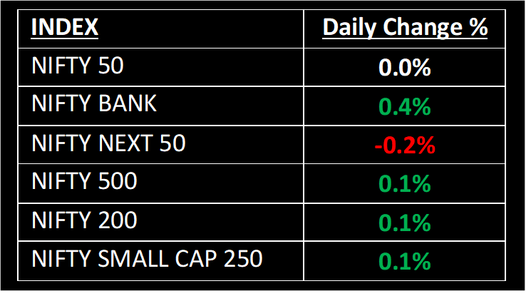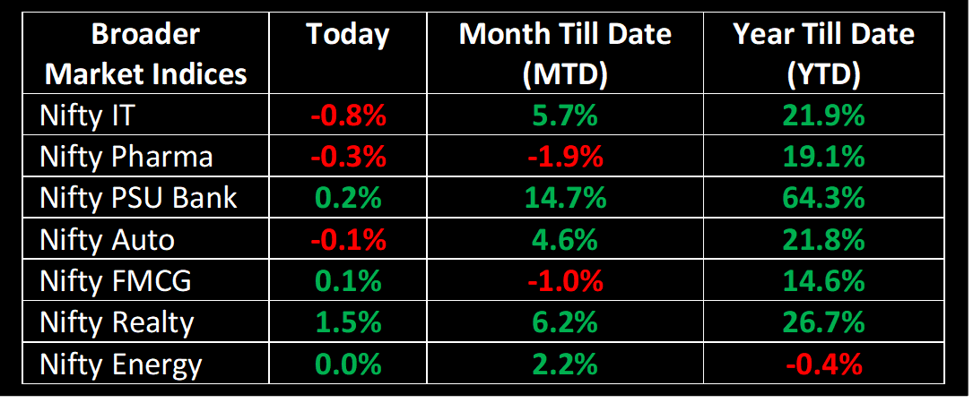 The Indian benchmark indices put an end to their four-day losing streak, concluding the day with marginal gains in a volatile session on September 25. Due to a combination of mixed global signals, the market kicked off on a flat note. Although early trading witnessed considerable volatility, subdued performance in European and various Asian indices ultimately led to a relatively unchanged close for the Indian market. Investors have turned cautious due to the recent rise in US treasury yields, and persistent selling by foreign institutional investors (FIIs) in Indian equities.