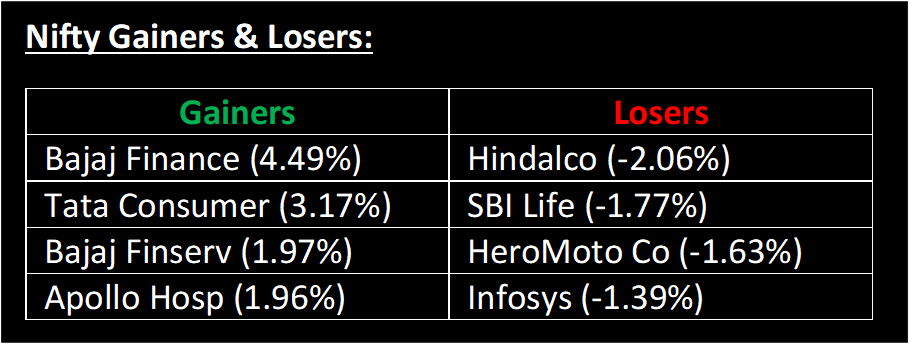 The Indian benchmark indices put an end to their four-day losing streak, concluding the day with marginal gains in a volatile session on September 25. Due to a combination of mixed global signals, the market kicked off on a flat note. Top Gainer : Bajaj Finance | Top Loser : Hindalco