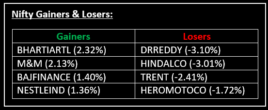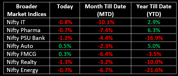 On the sectoral front, IT, metal, oil & gas, energy, capital goods, PSU banks, and realty declined 0.5-1%, while auto, consumer durables, FMCG, and telecom gained about 0.5% each.