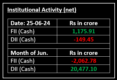 On June 25, Indian markets closed at fresh record highs, driven by gains in Banking and IT stocks. The market surge followed RBI data released a day earlier, which indicated a current account surplus of $5.7 billion, or 0.6% of GDP, in the fourth quarter of the fiscal year 2023-24.