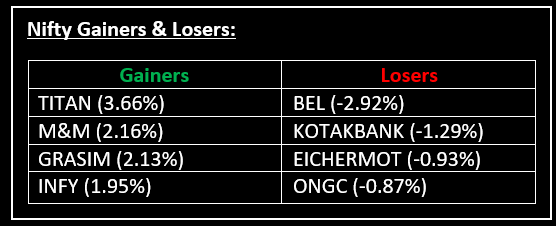 ▪ Reliance Infrastructure: Stock jumped 5% following the announcement that Reliance Defence, a subsidiary of the company, won an export order valued at Rs 600 crore.