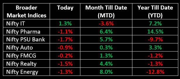 Despite the early optimism, only the IT sector ended in the green, while auto, capital goods, consumer durables, metal, oil & gas, power, PSU banks, realty, and telecom all saw declines of 1-1.5%.