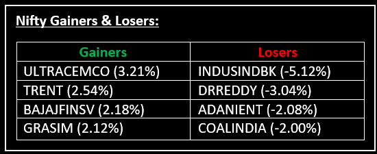 On March 25, the market extended its winning streak for the seventh consecutive session, driven by positive global cues. Top Gainer: ULTRACEMCO | Top Loser: INDUSINDBK