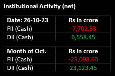 On October 26, the bears continued to dominate Dalal Street for the sixth consecutive session, driven by increasing US bond yields and escalating tensions between Hamas and Israel. Top Gainer: Axis Bank | Top Loser: M&M