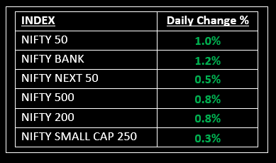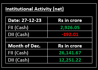On December 27, the benchmark indices achieved new milestones, closing higher for the fourth consecutive session, with Nifty reaching 21,650. Except for the oil & gas and power sectors, all other sectoral indices concluded in the green. Top Gainer: ULTRACEMCO | Top Loser: ONGC