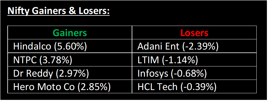 On September 29, the Indian market rebounded from its previous day's decline, supported by strong gains in the metals and pharmaceutical sectors. However, the fall in information technology stocks restrained overall market gains. Top Gainer : Hindalco | Top Loser : Adani Ent