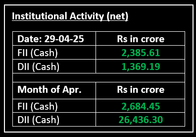 On April 29, the market struggled to maintain its intraday gains and ended flat in a rangebound session. Investors seemed cautious as they navigated through fluctuating market conditions, leading to minimal movement in key indices. Nifty, despite initially gaining ground, failed to hold onto its early momentum and traded within a narrow range. The market sentiment remained mixed as traders balanced between risk-off and profit-taking strategies.