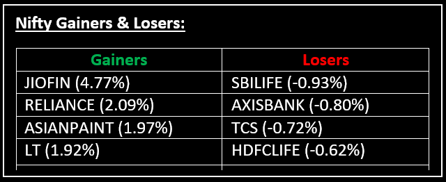 On July 29, benchmark indices snapped a three-day losing streak and ended higher, with the Nifty 50 closing above 24,800, supported by broad-based buying across heavyweight stocks and sectors. Top Gainer: JIOFIN | Top Loser: SBILIFE