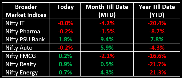 In the broader market, the BSE Midcap index rose 0.3%, while the BSE Smallcap index slipped 0.2%. Sector-wise, oil & gas, PSU banks, energy and realty gained between 0.7% and 1.8%, whereas defence and media declined by 0.8% to 1.4%.