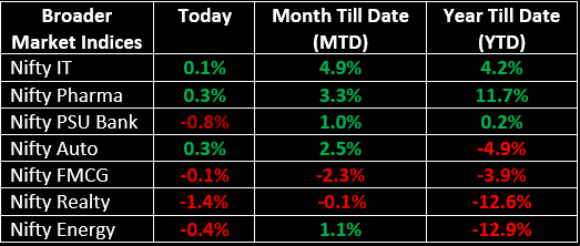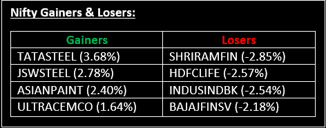 Sector-wise, the metal index rose by 1.4%, while the Consumer Durables index added 1%. On the downside, the PSU Bank, Defence, Realty, and Media sectors saw declines ranging from 0.4% to 1.4%.