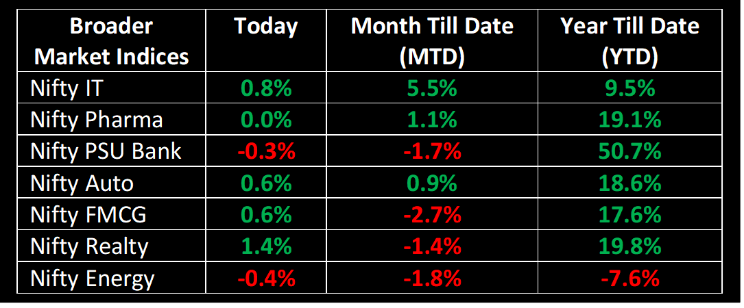 Markets were extremely choppy towards the closing hours and erased most of their early gains to end marginally higher, as investors resorted to profit-taking in select stocks ahead of tomorrow's monthly F&O expiry. Thanks to supporting global cues, the market started gap-up and held the gains throughout the session led by buying across sectors. However, last hour selling erased all the intraday gains.
