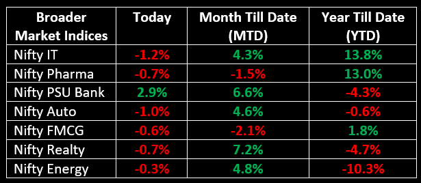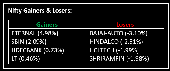 Sector performance was mixed: PSU banks led the gains with strong buying interest, private banks saw mild buying, while metals, automobiles, IT, and media sectors faced selling pressure.